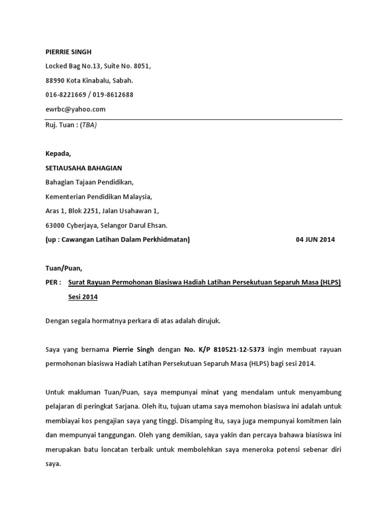 Contoh Surat Rayuan Permohonan Biasiswa Kerajaan Negeri Otosection